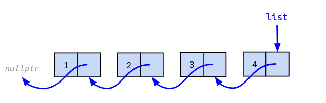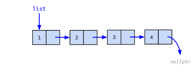 Using this structure it is possible to create a singly linked list using dynamic memory. For example: